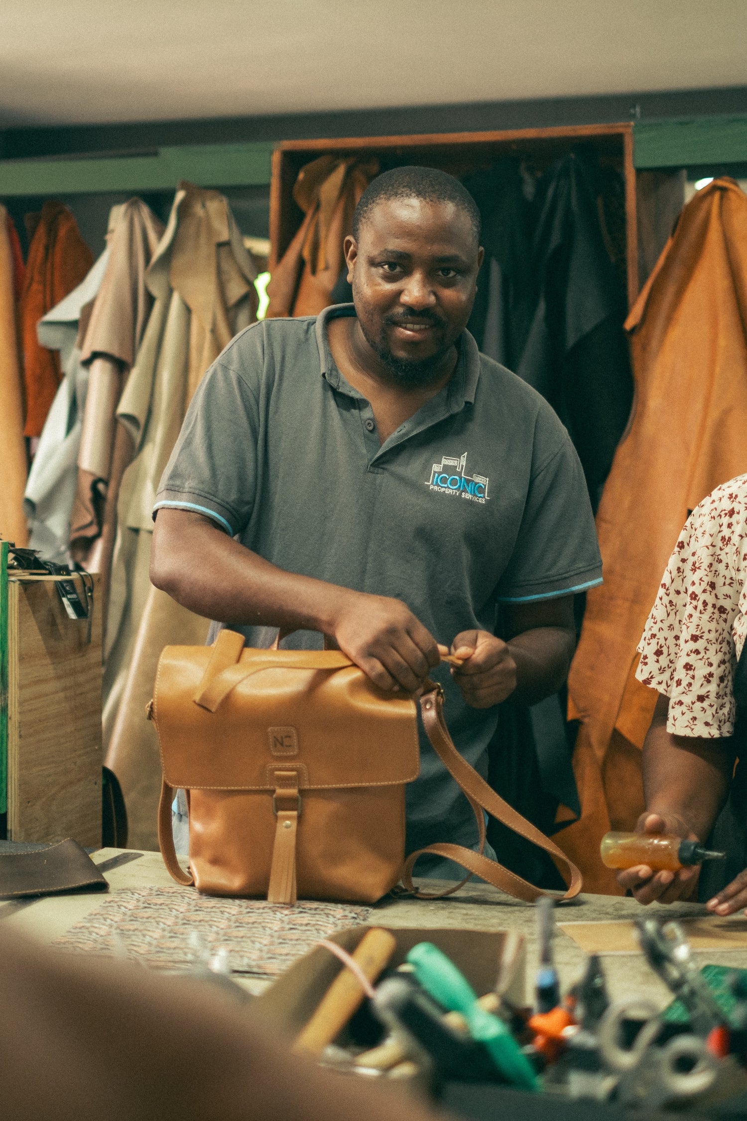 Bright joined the Ngozi team in 2023, continuing a family tradition in the leather industry that spans generations. His vast knowledge and impeccable attention to detail make him a true asset. Bright's personality shines through in every creation and showcases his rich heritage. Known for his happy-go-lucky nature, he maintains his bright smile even under pressure.